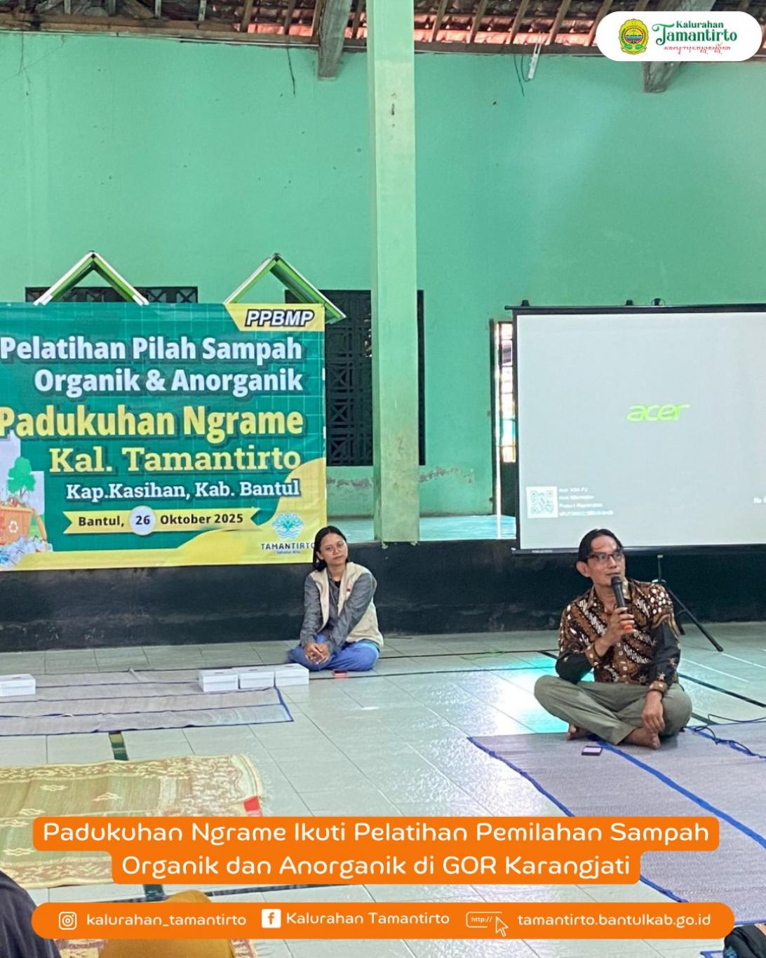 Tamantirto SID--Pada Ahad, 26 Oktober 2025, warga Padukuhan Ngrame mengikuti kegiatan Pelatihan Pemilahan Sampah Organik dan Anorganik yang diselenggarakan di GOR Karangjati. Kegiatan ini didukung oleh dana PPBMP (Peningkatan Partisipasi dan Pemberdayaan Masyarakat Padukuhan) sebagai upaya untuk meningkatkan kesadaran dan kemampuan masyarakat dalam pengelolaan sampah rumah tangga.