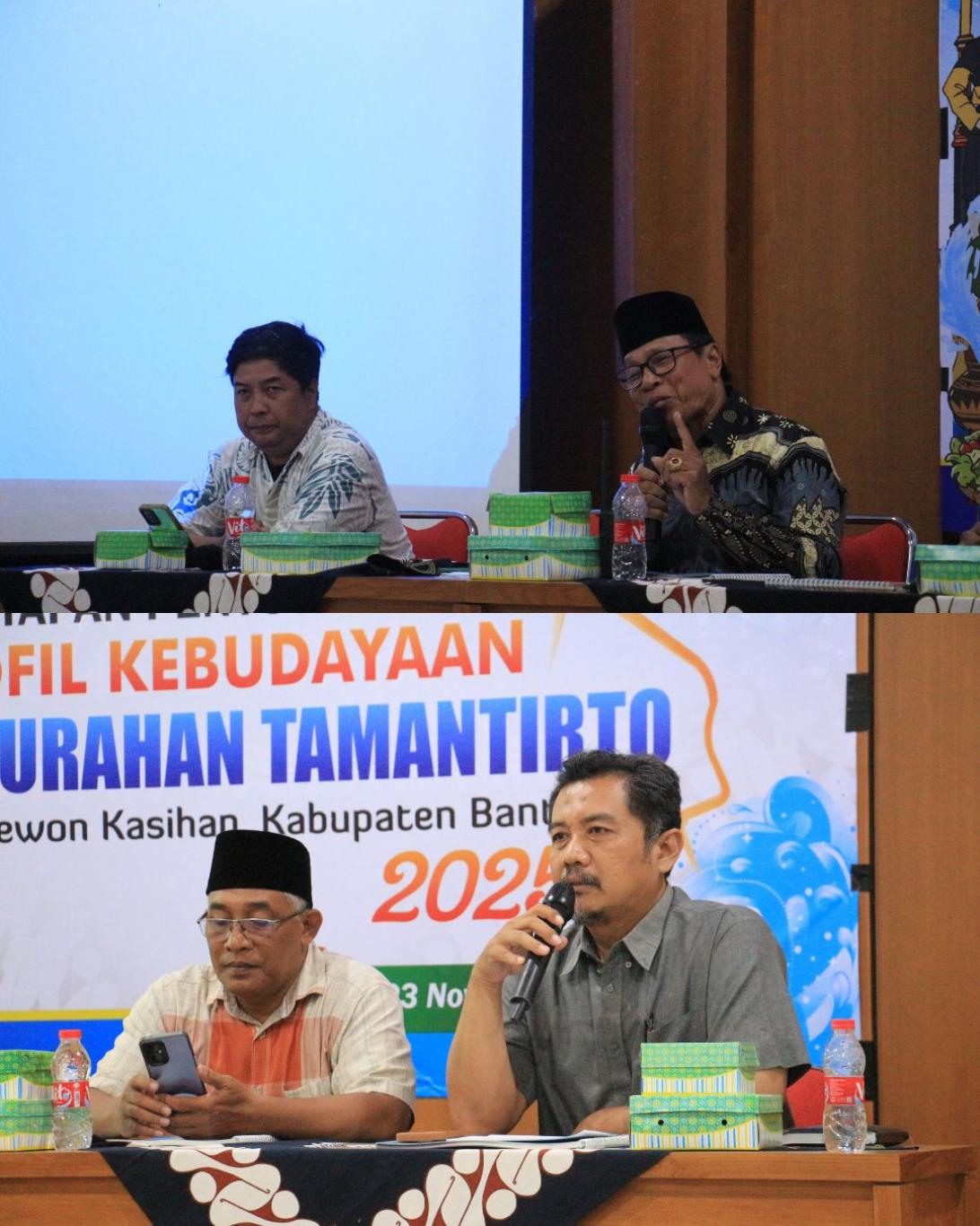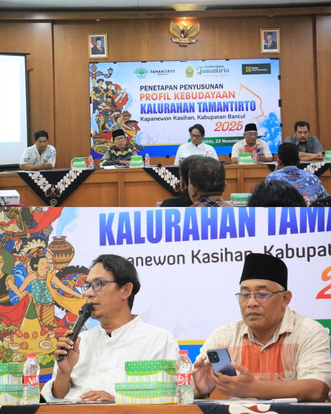 Tamantirto SID--Pada Ahad, 23 November 2025 pukul 20.00 WIB, telah dilaksanakan kegiatan Penetapan Penyusunan Profil Kebudayaan Kalurahan Tamantirto bertempat di Ruang Rapat Taman Kasih lantai 2. Pertemuan ini dihadiri oleh unsur Dinas PMK Bantul, Dinas Kebudayaan Bantul, Kapanewon Kasihan, Lurah Tamantirto, para dukuh, Ketua Bamuskal, serta pendata kebudayaan Kalurahan Tamantirto.