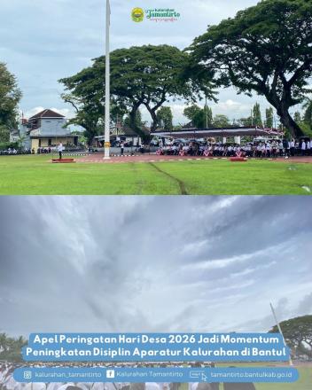 Tamantirto SID--Dalam rangka memperingati Hari Desa Tahun 2026 sekaligus meningkatkan disiplin Aparatur Pemerintah Kalurahan, Pemerintah Kabupaten Bantul menyelenggarakan kegiatan apel bersama yang berlangsung pada Rabu, 14 Januari 2026. Kegiatan apel dilaksanakan mulai pukul 07.30 WIB hingga selesai, bertempat di Lapangan Trirenggo, Kalurahan Trirenggo, Kapanewon Bantul.