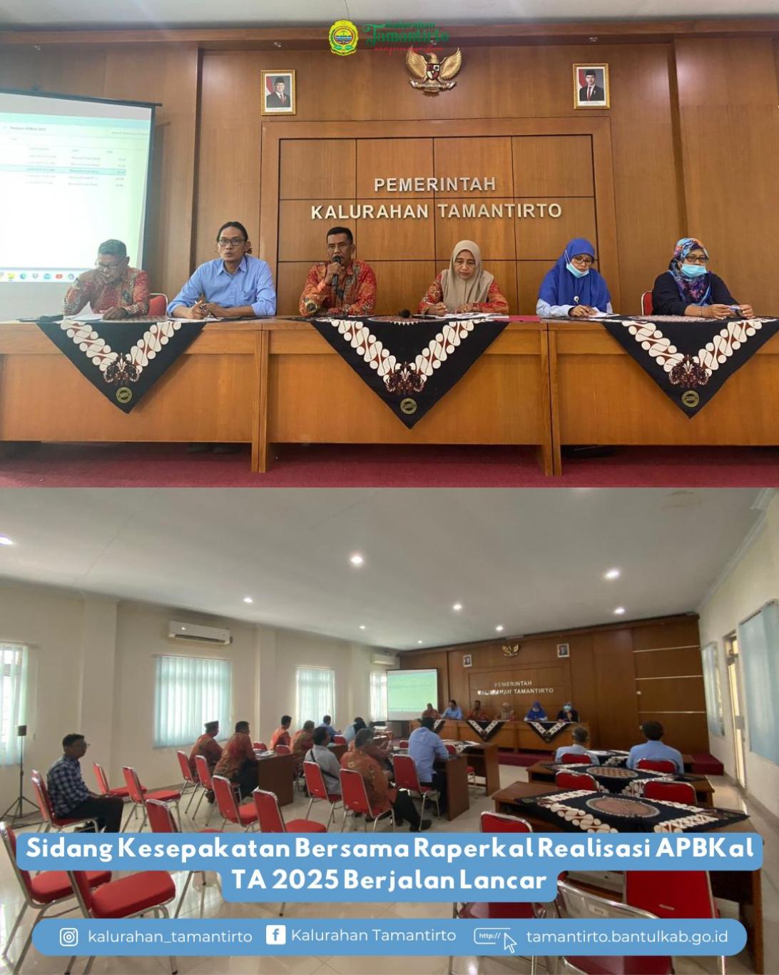 Tamantirto SID--Sidang Kesepakatan Bersama Rancangan Peraturan Kalurahan (Raperkal) tentang Realisasi APBKal Tahun Anggaran 2025 dilaksanakan pada Selasa, 24 Februari 2026, bertempat di Ruang Rapat Taman Kasih. Kegiatan ini dihadiri oleh Panewu Kapanewon Kasihan, Lurah, jajaran Kasi dan Kaur, serta anggota Bamuskal.