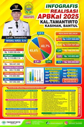 Infografis realisasi APBKal Tahun 2025, Kalurahan Tamantirto, Kasihan, Bantul