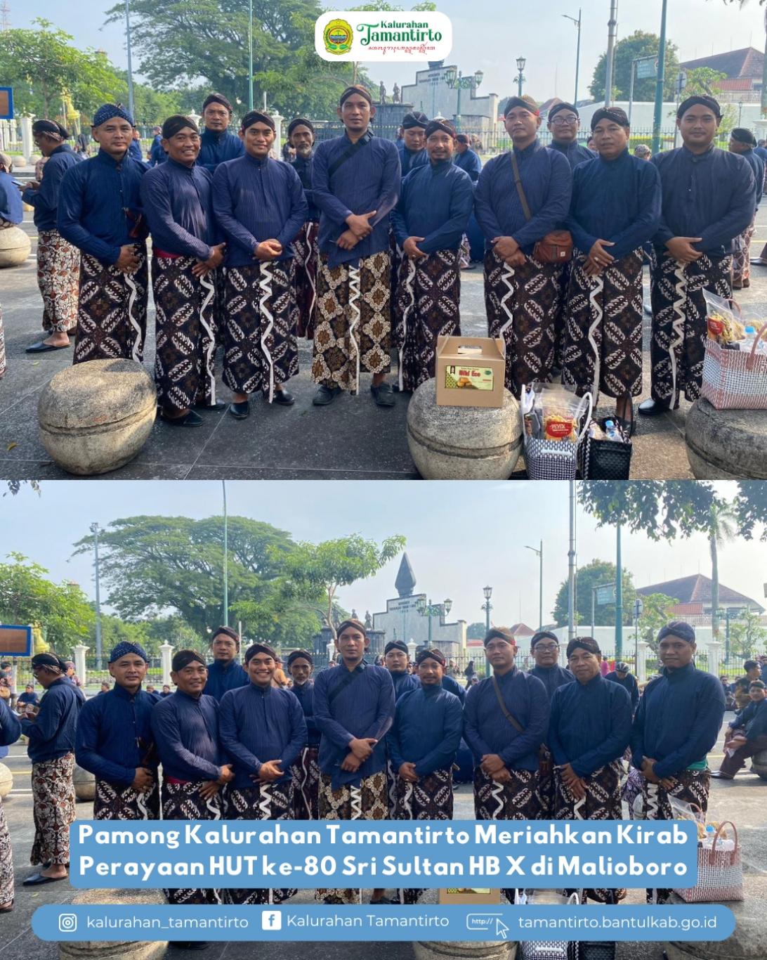 Tamantirto SID--Pamong Kalurahan Tamantirto turut serta memeriahkan Kirab Perayaan Hari Ulang Tahun ke-80 Sri Sultan Hamengku Buwono X yang digelar pada Kamis, 02 April 2026 pagi di kawasan Malioboro, Yogyakarta.
