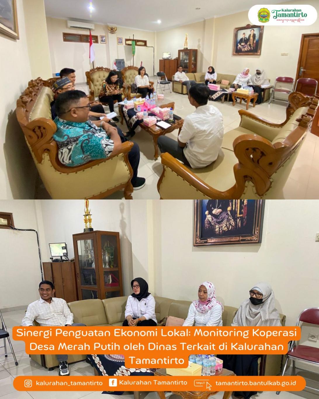 Tamantirto SID--Pada hari Rabu, 22 Oktober 2025, dilaksanakan kegiatan monitoring terhadap Koperasi Desa Merah Putih yang berlokasi di Kalurahan Tamantirto. Kegiatan ini berlangsung di Ruang Lurah Tamantirto dengan melibatkan beberapa instansi terkait, yaitu Dinas Kominfo Bantul, Dinas Pariwisata Bantul, serta pihak Kapanewon Kasihan.
